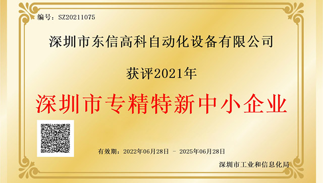 熱烈祝賀我司獲評(píng)2021深圳市專精特新中...